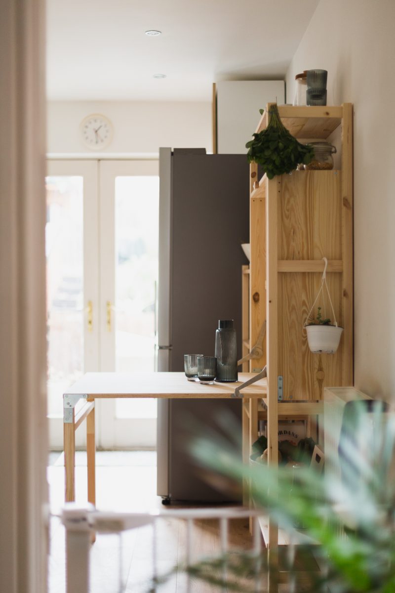 Une cuisine avec une table rabattableC’est le côté « fait » de la cuisine. Le reste des photos n’est pas si joli !